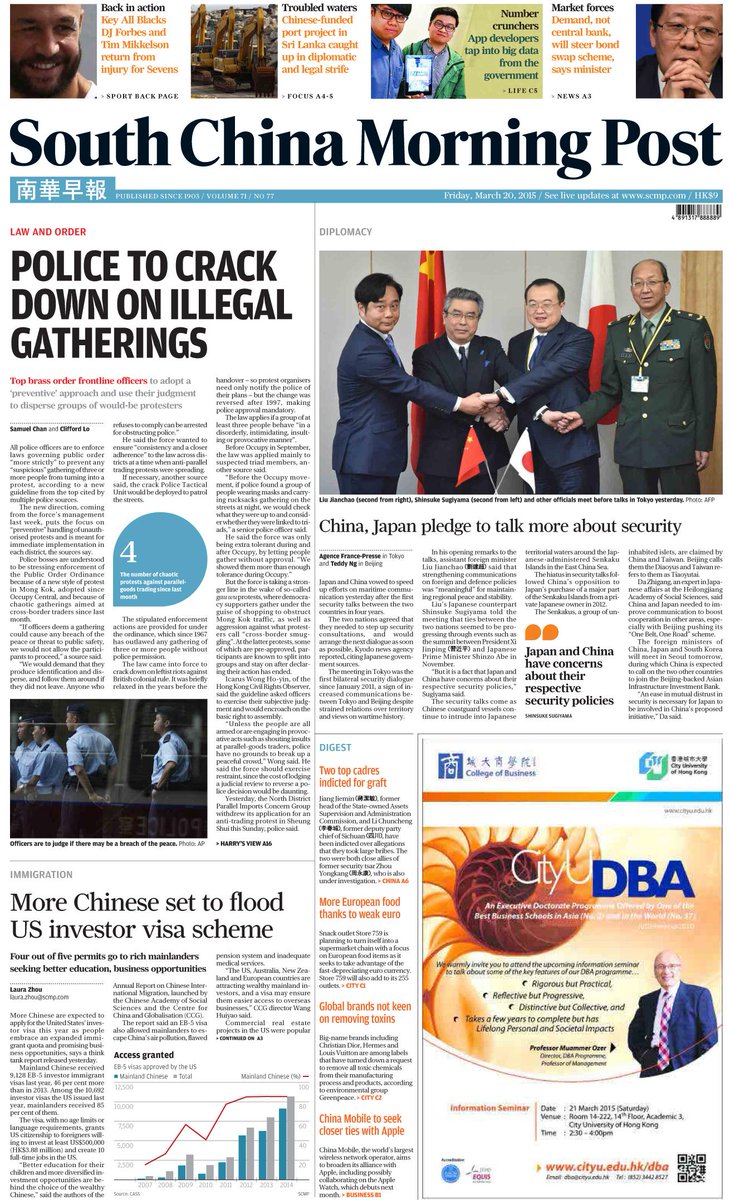 Our front page for March 20, 2015. Check out the latest news & top stories at http://scmp.com pic.twitter.com/VxUQvQipPC