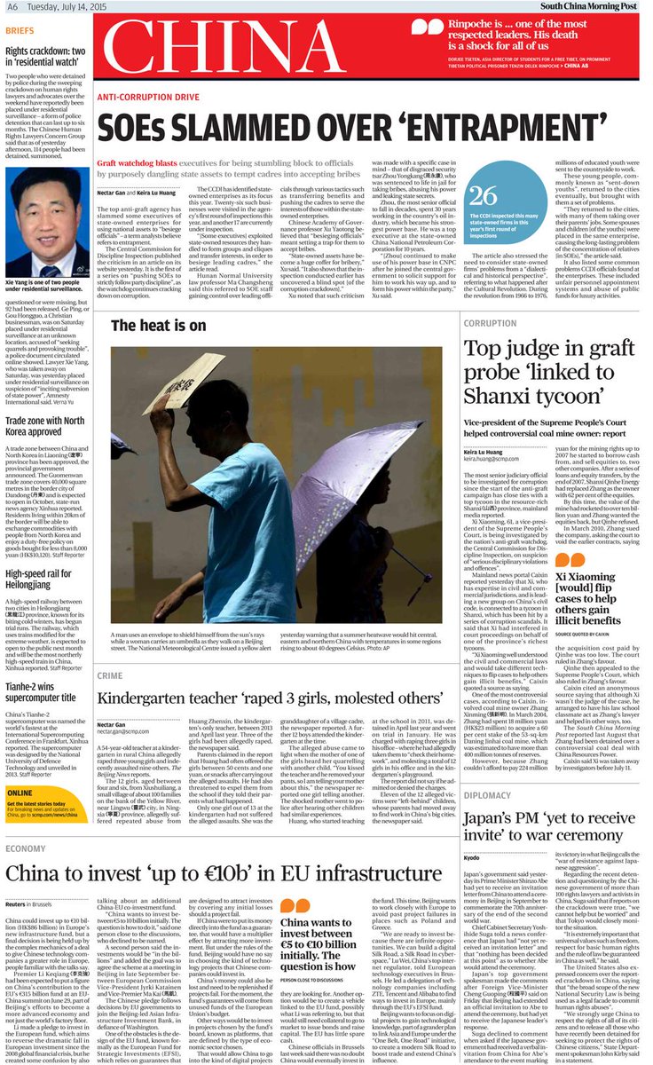 #Tuesday's front pages of The South China Morning Post. To subscribe, find out more here: http://sc.mp/uod6l pic.twitter.com/uY8ODXBTIm