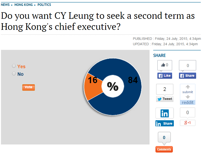 Have Your Say: Do you want CY Leung to seek a second term as HK's chief executive? Vote now http://sc.mp/j15oa pic.twitter.com/29yDPJdyDc