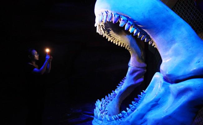 Today in Photos: A visitor takes photo of a model of Shark's teeth at the Polar Aquarium in Tianjin. Photo: Xinhuapic.twitter.com/vtQ5h7KnRw