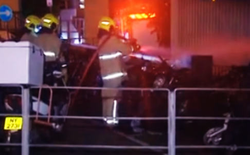 Hot wheels: #Arson attack damages 37 #motorcycles parked under Hong Kong footbridge. http://ow.ly/RqWrW pic.twitter.com/nn9ddAWmFI