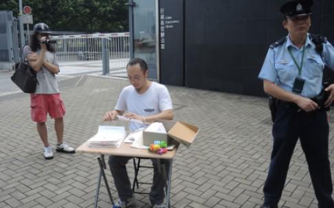 A #HK #artist staged a #silent #protest against chief executive’s office. http://ow.ly/RWqyG pic.twitter.com/ljICiWox3l