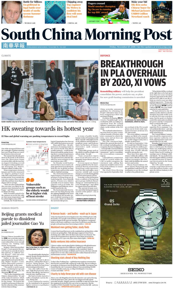 #Friday's front pages of The South China Morning Post. To subscribe, find out more here: http://sc.mp/uod6l pic.twitter.com/XMXQb3hCnc