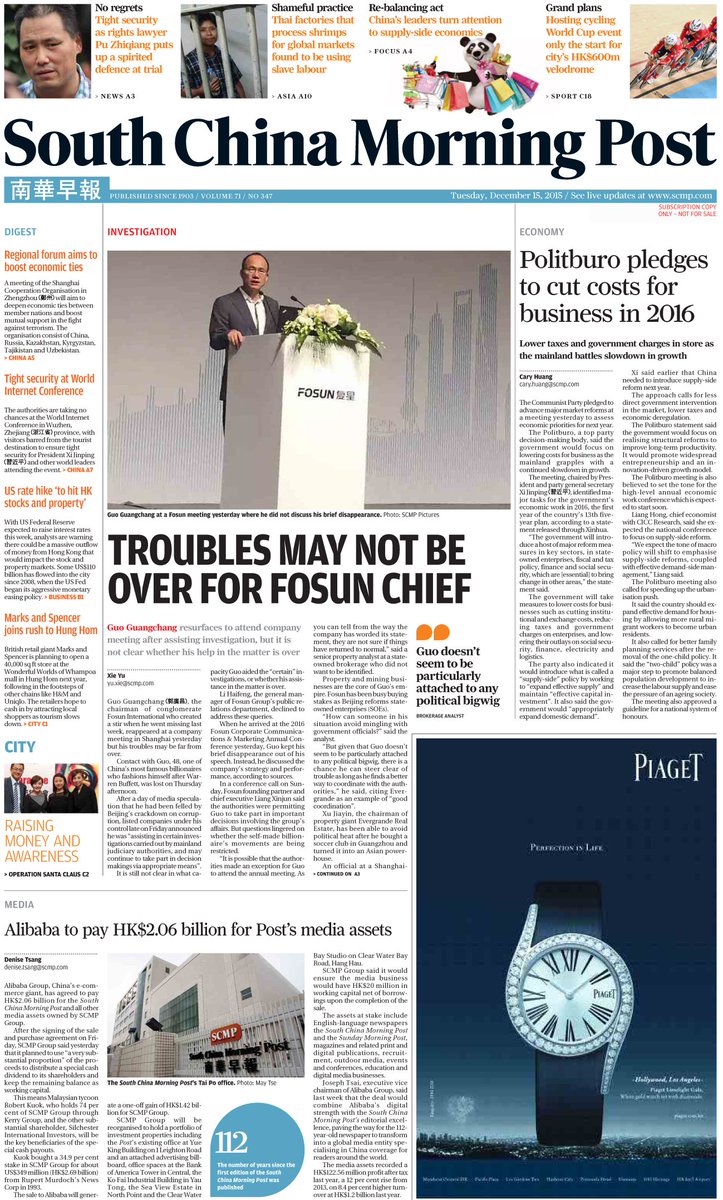 Tuesday's front pages of The South China Morning Post. To subscribe, find out more here: http://sc.mp/uod6l pic.twitter.com/TELRCvDc7K