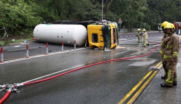 Two pedestrians die and tanker crashes during grim day on Hong Kong roads. http://buff.ly/21bRI6n pic.twitter.com/fS4WycTu0q
