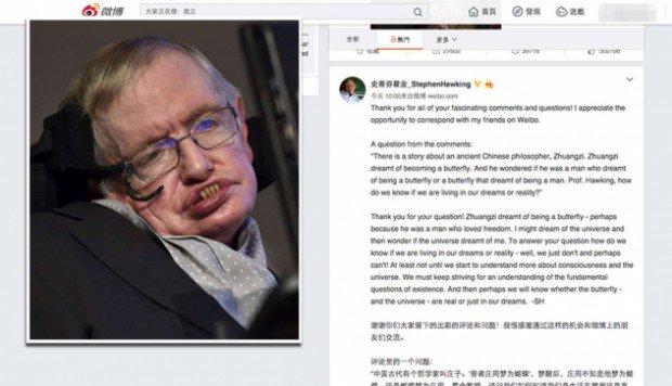 Stephen Hawking asks 3m Chinese Weibo followers: 'Are we living in a dream?' http://buff.ly/1N24FNV pic.twitter.com/SLCONsKp0A