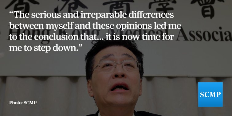 Hong Kong medical chief quits in dispute over Medical Council reform http://buff.ly/1QJ18Pa pic.twitter.com/y8qyclCWps