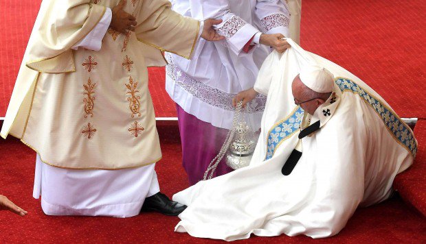Pope Francis stumbles on step at altar of Polish shrine http://buff.ly/2ahqjOB pic.twitter.com/1BKDhkruh0