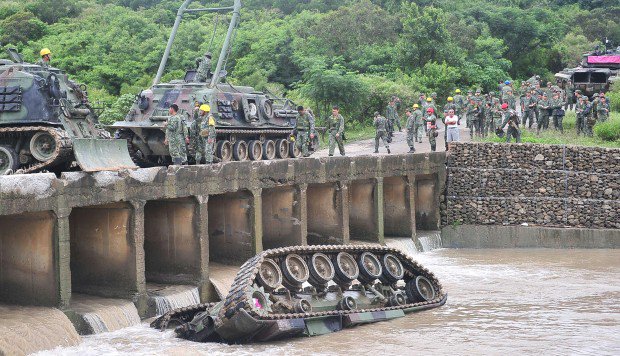 Three Taiwanese soldiers killed after tank falls off bridge in heavy rain http://buff.ly/2bjEYLR pic.twitter.com/gsSOiDYtDn