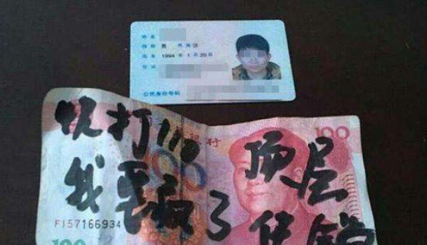 Chinese man freed from captivity after writing SOS messages on 800 yuan of banknotes http://buff.ly/2c6K76J pic.twitter.com/7is8lb4a68