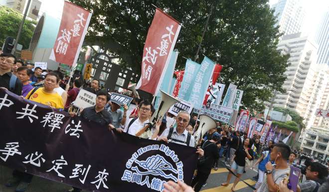 Thousands of Hongkongers join protest march against Beijing’s interpretation of Basic Law http://buff.ly/2eBqoyP pic.twitter.com/8qjYKFyWVG