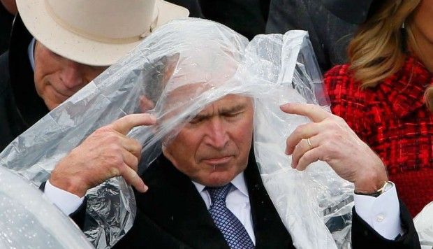George W. Bush struggled with his poncho during Trump's inauguration ceremony http://buff.ly/2j4gYhj pic.twitter.com/rtbc5fyMuz