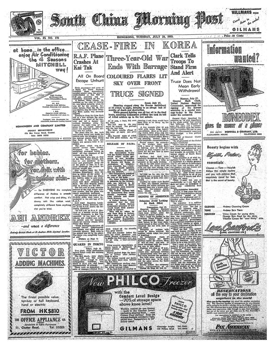 On this day in 1953: "Cease-fire in Korea" as Korean War armistice was declaredpic.twitter.com/JBoHnHDhU1