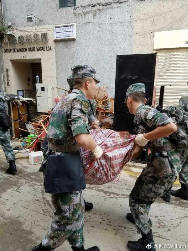 Chinese army garrison seen helping #Macau rescue and recovery efforts in the wake of Typhoon #Hato https://buff.ly/2wsYRth pic.twitter.com/n0pw2xgpoK