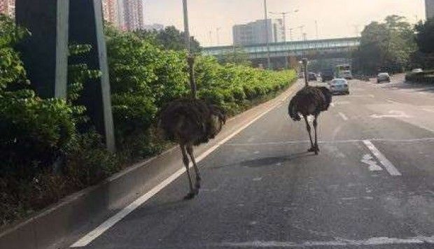 Escaped ostriches block traffic as they flee down motorway https://buff.ly/2xfZFOf pic.twitter.com/x0CBC260Su