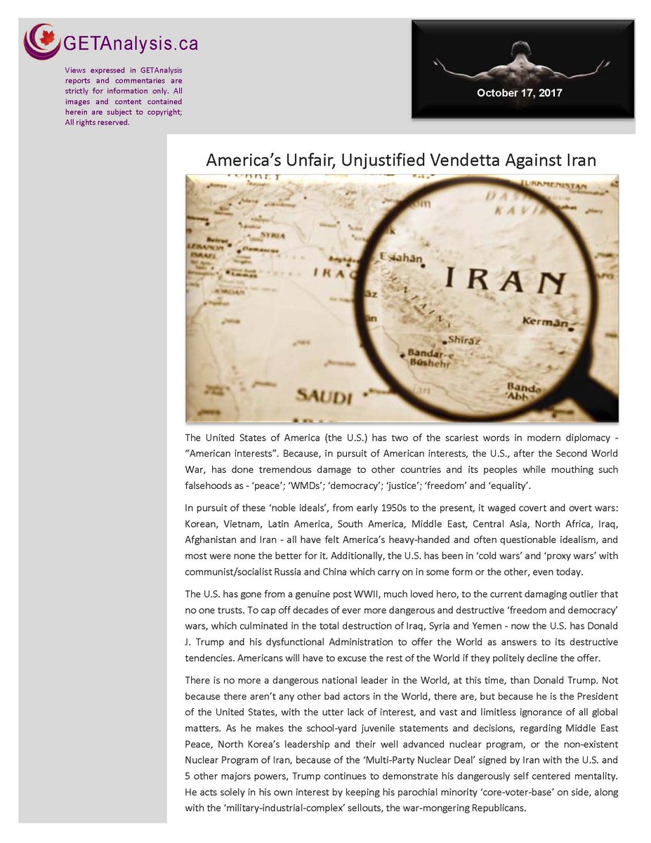 READ 6 page Commentary called: #America's Unfair, Unjustified #Vendetta Against #Iran at http://www.GETAnalysis.ca pic.twitter.com/v2IiN9kJpb
