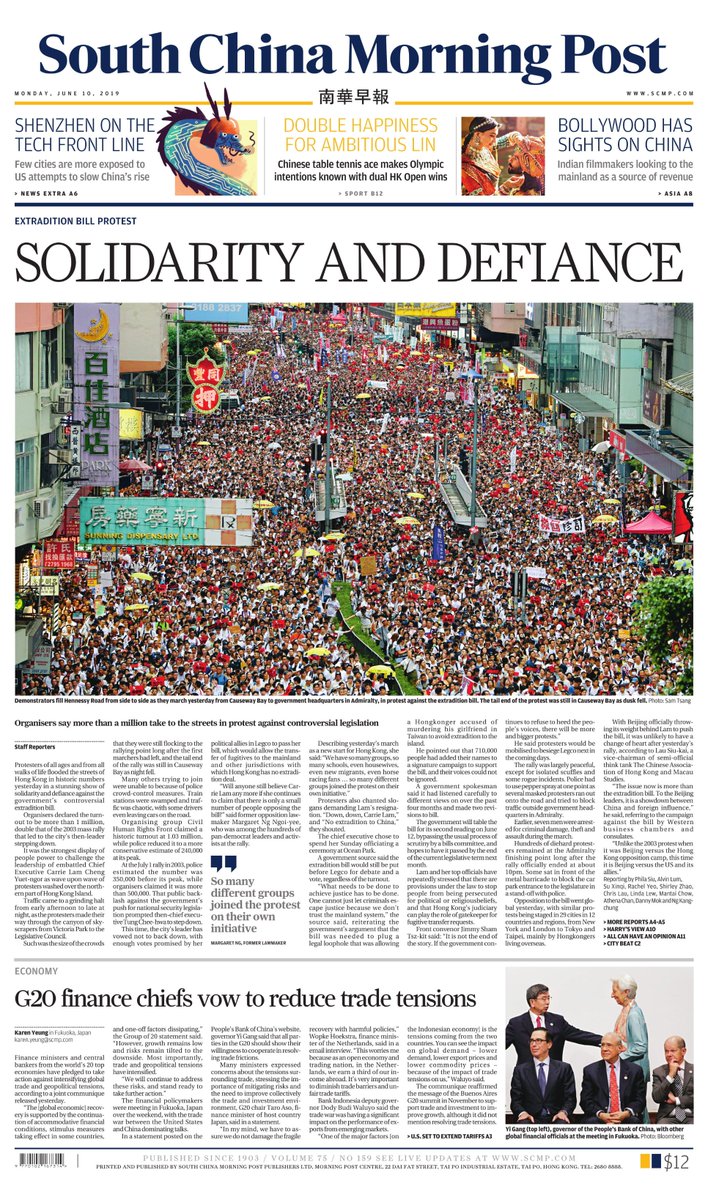 1/5: An unprecedented 1 million people poured into the streets of Hong Kong on Sunday to protest a controversial extradition bill, organisers of the historic event say https://sc.mp/7ccl