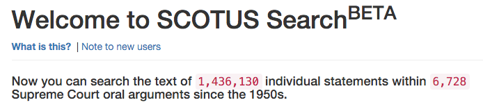 @SCOTUSSearch 1.5 million statements, from oral argument from the '50s onwards: http://scotussearch.com pic.twitter.com/a80C7EoWn4
