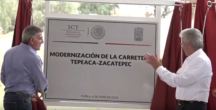 Momento de la develación de las placas de la Modernización del Anillo Periférico Ecológico y la Construcción de la Ciclopista, así como de la Modernización de la Carretera Tepeaca-Zacatepec