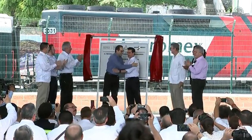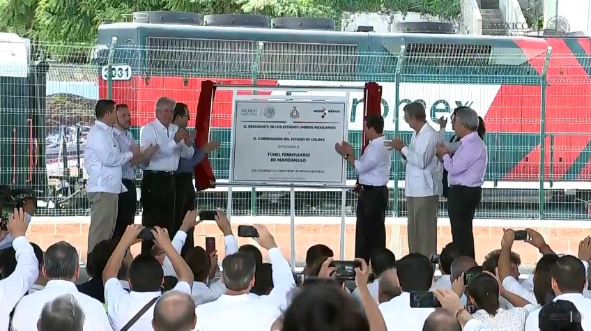 Momento de la develación de la Placa Inaugural del Túnel Ferroviario para cambio de ruta en Manzanillo, por el Presidente @EPN