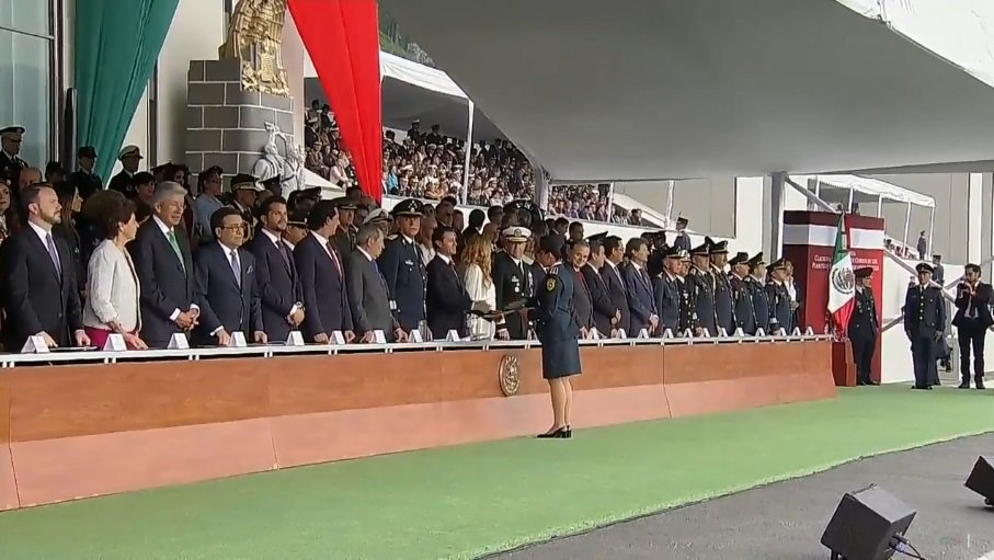 Entrega de reconocimientos por parte del Presidente @EPN durante la Ceremonia de clausura y apertura de Cursos de los Planteles del Sistema Educativo Militar, el Secretario @gruizesp lo acompaña.