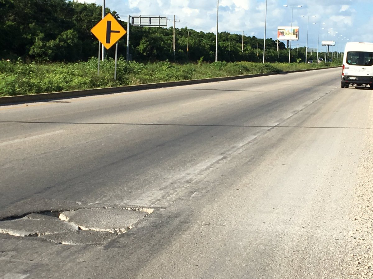 Será que nos puedan echar una manita pavimentando estos megabaches peligrosos, son varios de este tipo desde Playa del Carmen hasta Cancun en carril de baja de la 307. Nadie nos escucha! @centro_sct_qroo @SCT_mx @oscarcallejo @IngCPoon @Yuriria_Mascott @gruizesp @JMezquita_Garma pic.twitter.com/vKoLjBMLga