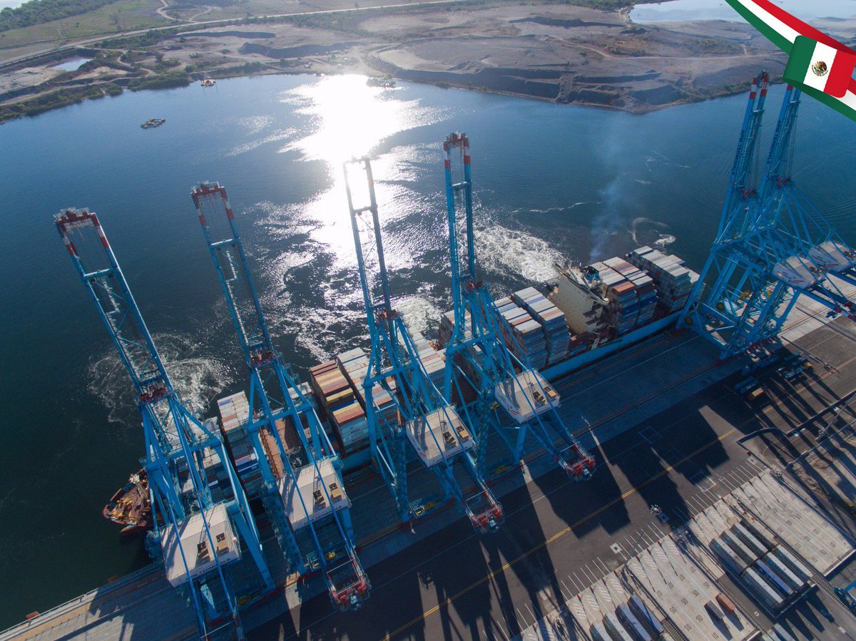 #BuenosDías desde la Terminal de Contenedores del #PuertoLázaroCárdenas, una terminal ecológica que trabaja con eficiencia energética para reducir gases de efecto invernadero.