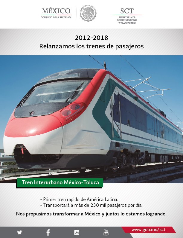 Secretaría de Comunicaciones y Transportes | http://Instagram.com/sct_mx  | http://facebook.com/SCTmx  🇲🇽🚃🚄🚆🚛🚊✈️⚓️🛰️📡🛣️