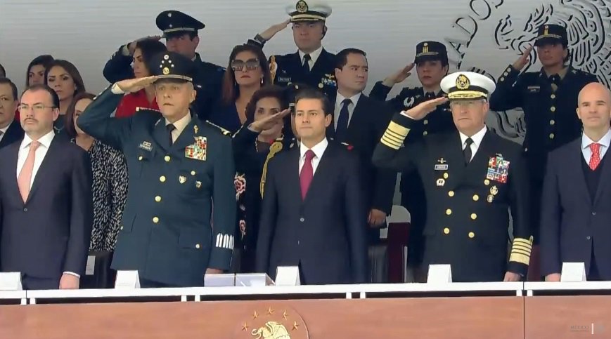 El Secretario de Comunicaciones y Transportes, @gruizesp, acompaña al Presidente @EPN en la Ceremonia de Imposición de Condecoraciones y Ascensos en el marco del 108 Aniversario de la #RevoluciónMexicana