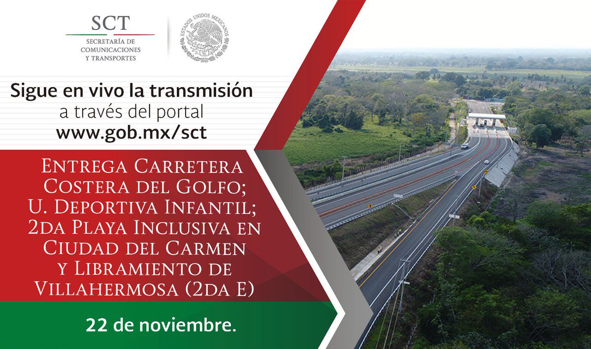 Sigue todos los detalles de la Entrega de la carretera Costera del Golfo; de la unidad deportiva infantil; de la 2da. Playa Inclusiva en Ciudad del Carmen y del Libramiento de Villahermosa en su 2da. etapa en