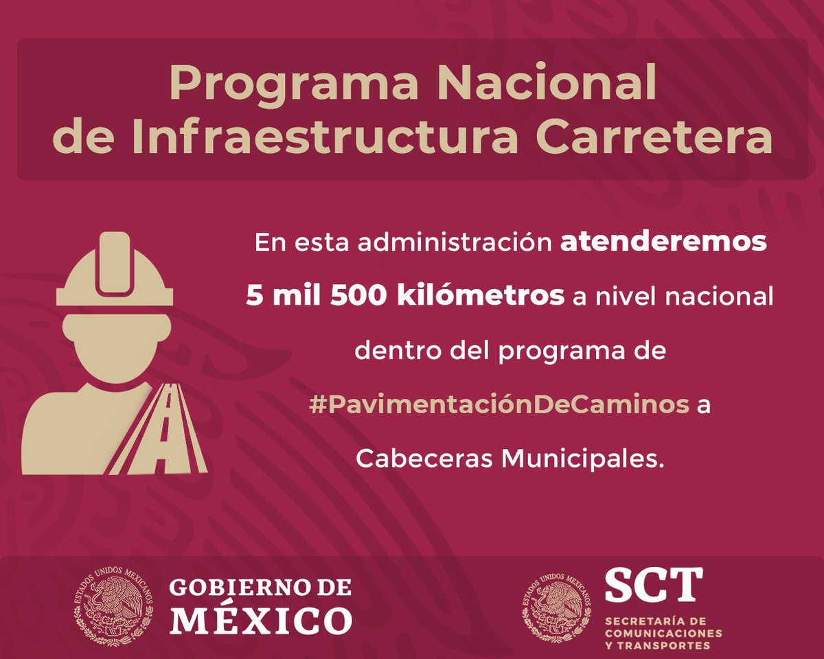 Nuestro #ProgramaCarretero plantea que la infraestructura carretera es elemento detonador del desarrollo, por lo que daremos prioridad a zonas donde no la hay. Conoce la inversión durante 2019 en el Programa Nacional de Infraestructura Carretera 🛣😉🖱👉 https://bit.ly/2To07FH pic.twitter.com/8VHS2wE5Mp