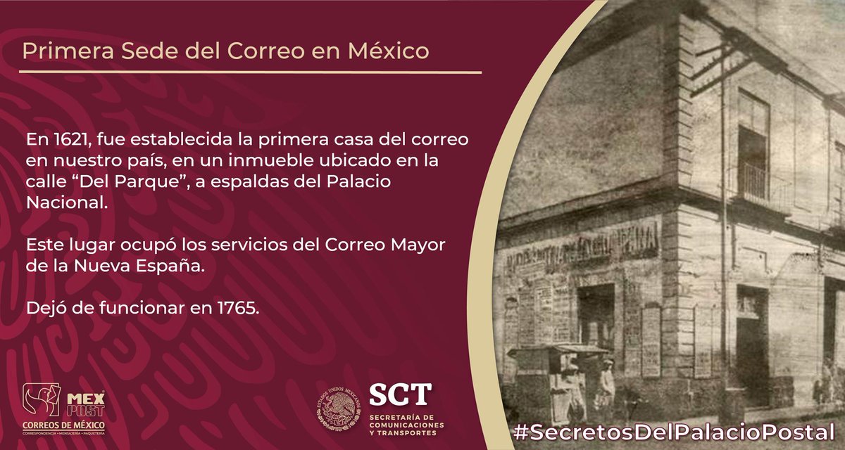 #ParalosCuriosos🤔 La primera sede del correo en nuestro país se encontraba a espaldas del Palacio Nacional. 🧐 Visita la cuenta de @CorreosdeMexico para descubrir más #SecretosDelPalacioPostal y conoce nuestra #HistoriaSCT. 📫✉📮😉pic.twitter.com/et7DYHaWNw
