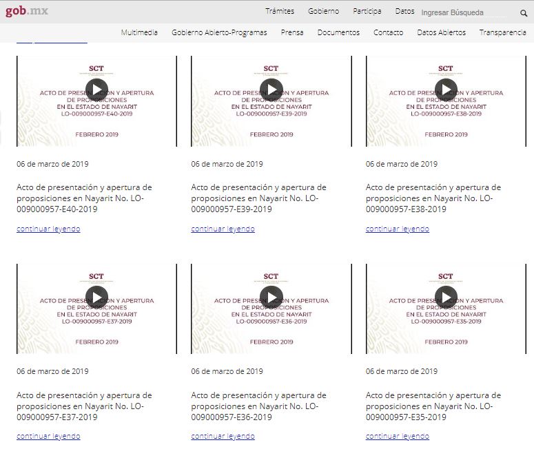 En nuestro portal están disponibles para libre consulta, los videos de las licitaciones que lleva a cabo la actual administración.