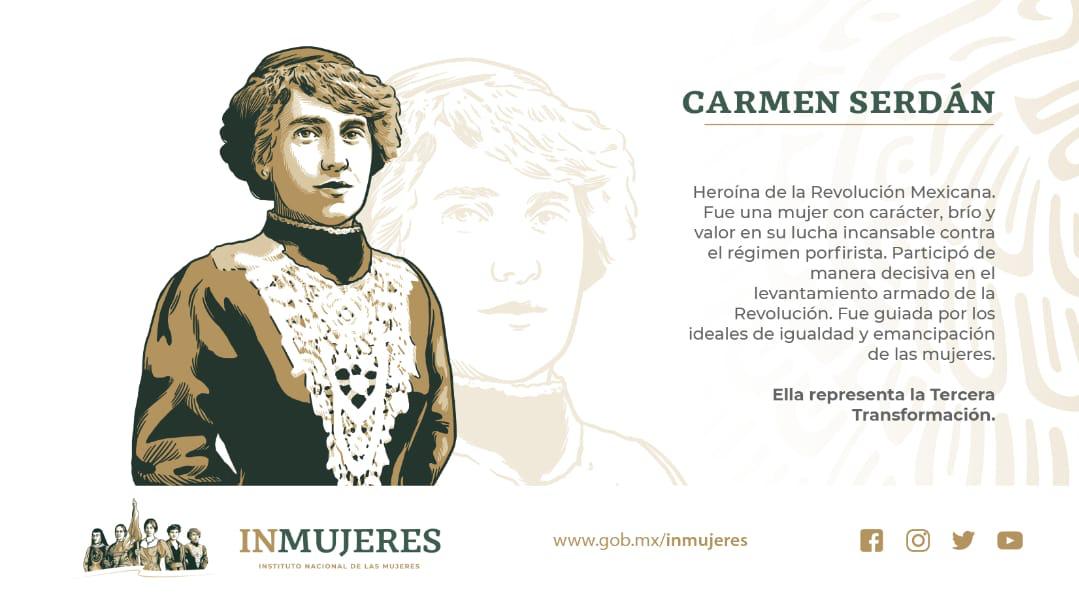 🔷 Carmen Serdán Participó de manera decisiva en el levantamiento armado de la Revolución. Fue guiada por los ideales de igualdad y emancipación de las mujeres. Ella representa la Tercera Transformación.pic.twitter.com/zps3O9irZy