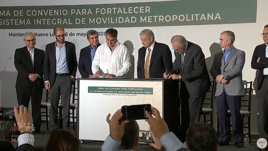 Momento de la Firma de Convenio para Fortalecer el Sistema Integral de Movilidad Metropolitana en