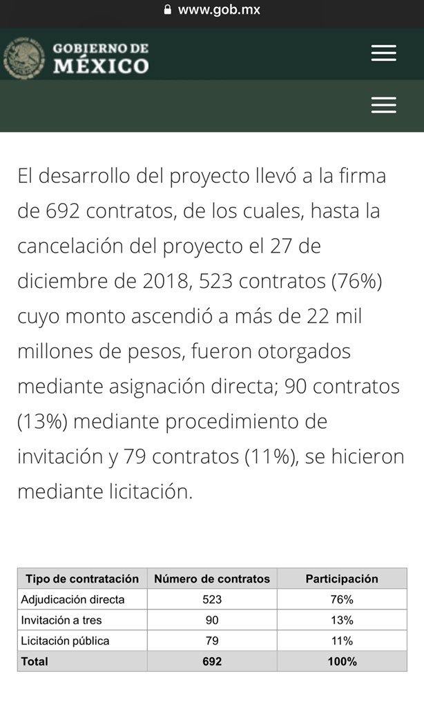 76% de los contratos fueron por asignación directa, con razón les arde tanto la cancelación del Aeropuerto de Texcoco.pic.twitter.com/RuergE9j4c