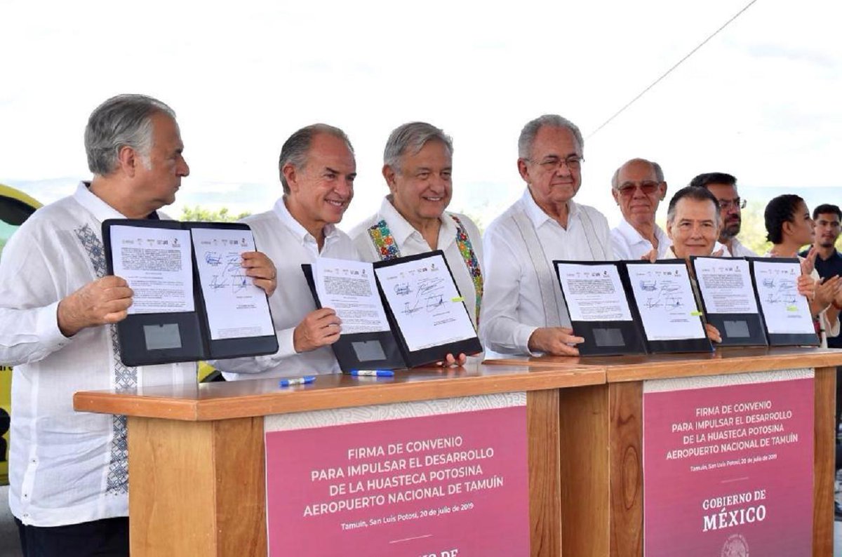 #ComunicadoSCT Firman convenio SCT y el @GobEdoSLP para la Ampliación y Modernización del Aeropuerto de Tamuín. ➡️ https://bit.ly/2JYNiyq pic.twitter.com/8WSOmVS0TM