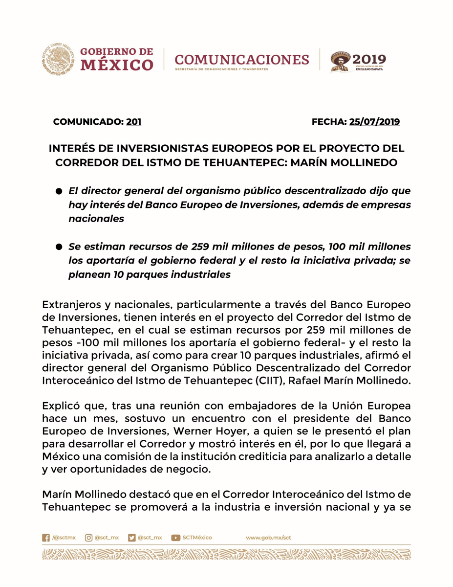 Interés de inversionistas europeos por el proyecto del corredor del Istmo de Tehuantepec: Marín Mollinedo