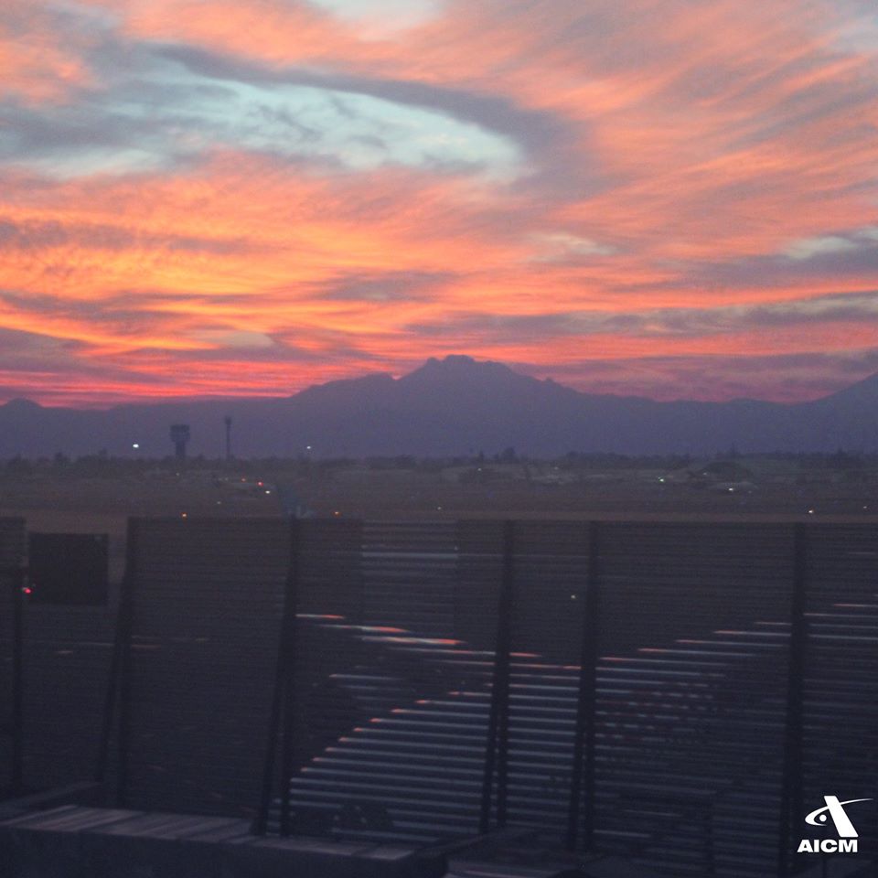 Te damos los #BuenosDías con este amanecer pintando las nubes del #AICM.