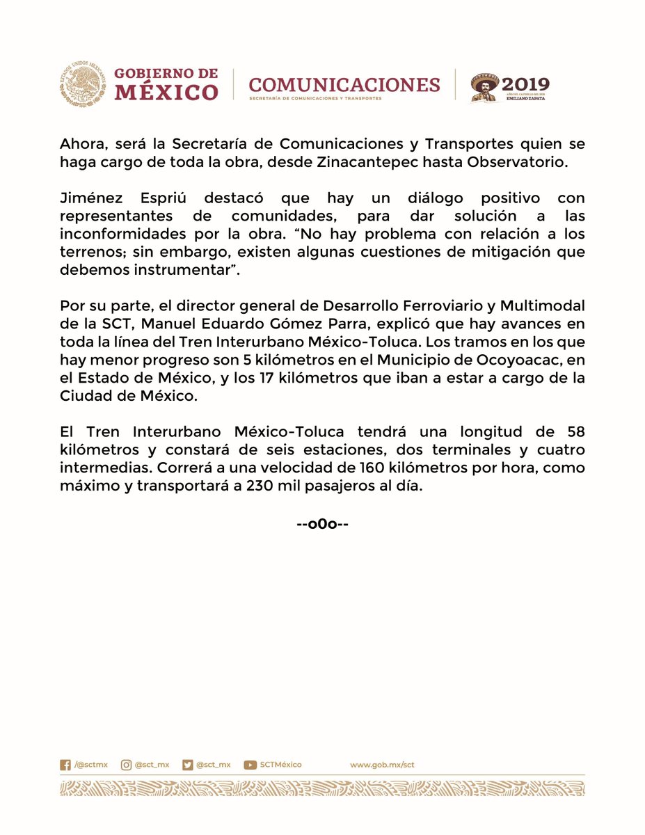 en la construcción del Tren MEXICO TOLUCA