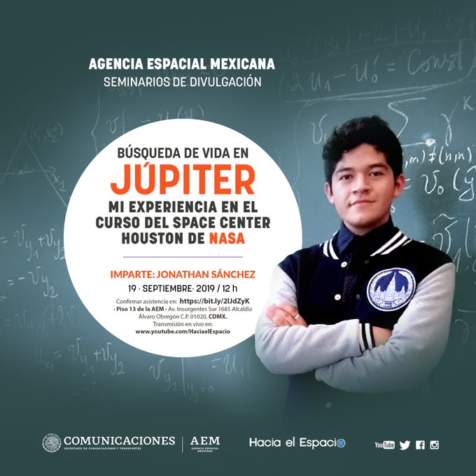 La @AEM_mx te invita al #Seminario que impartirá Jonathan Sánchez, quien nos hablará sobre la búsqueda de vida en "Europa", satélite de #Júpiter, y sobre su experiencia en el Space Center Houston de la @NASA.
