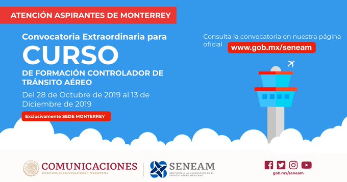 ¡#Monterrey, recuerda que la convocatoria extraordinaria para el Curso de Controlador de Tránsito Aéreo sigue abierta!