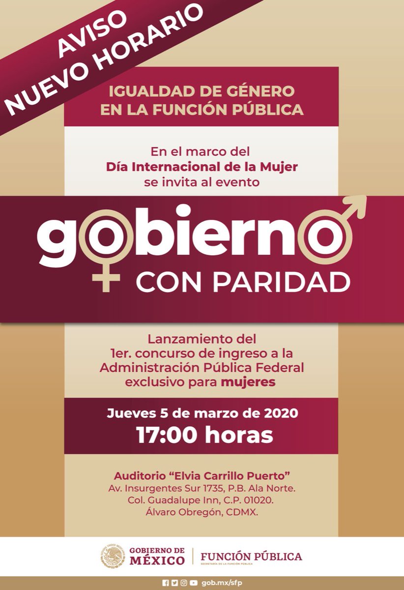 El @GobiernoMX a través de la @SFP_mx lanza el 1er. concurso de ingreso a la Administración Pública Federal exclusivo para mujeres