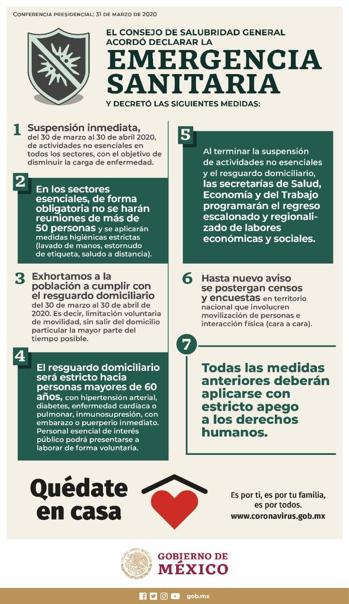 #QuédateEnCasaYa | El Consejo de Salubridad General declaró emergencia sanitaria y dio a conocer las siguientes medidas: