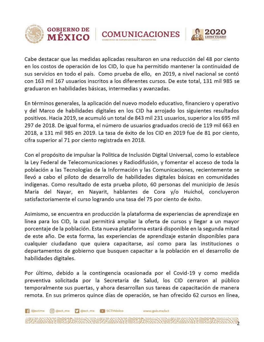 En 2019, la #SCT llevó a cabo un proceso de replanteamiento del modelo educativo, financiero y operativo de los centros de inclusión digital.