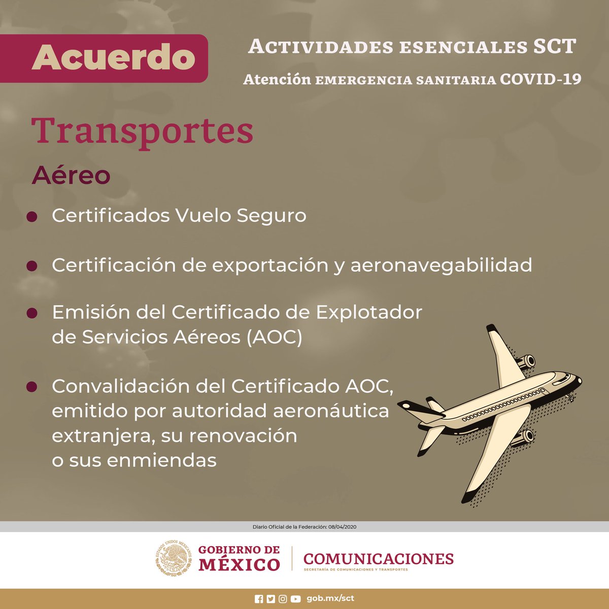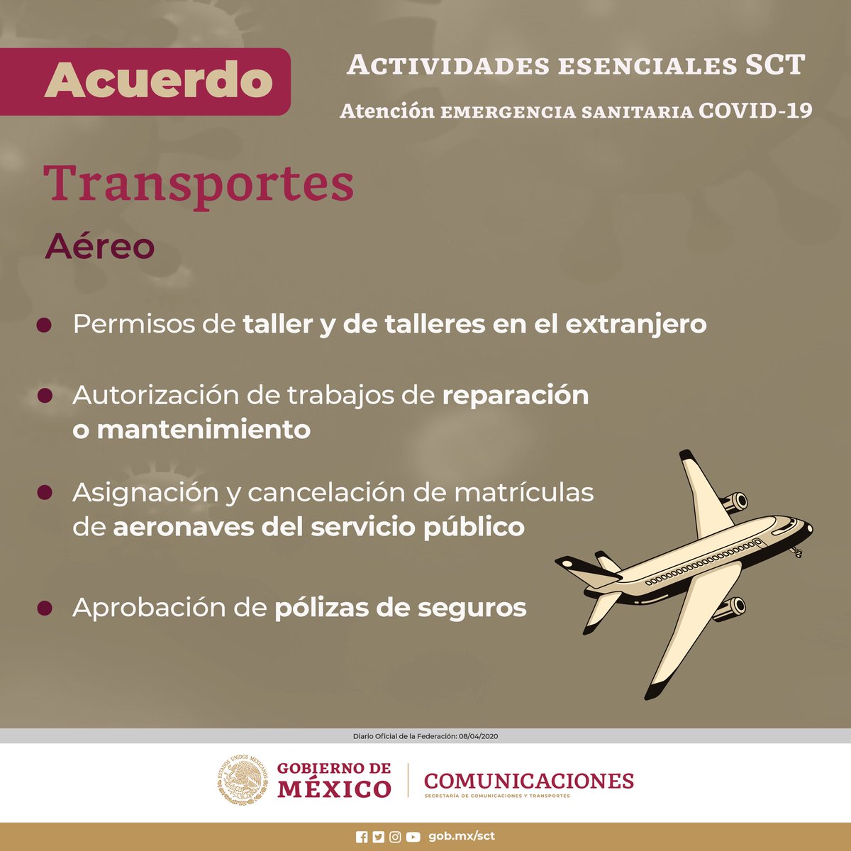 #AccionesSCT en materia de #TransporteAéreo para atender la #EmergenciaSanitaria por el #COVIDー19