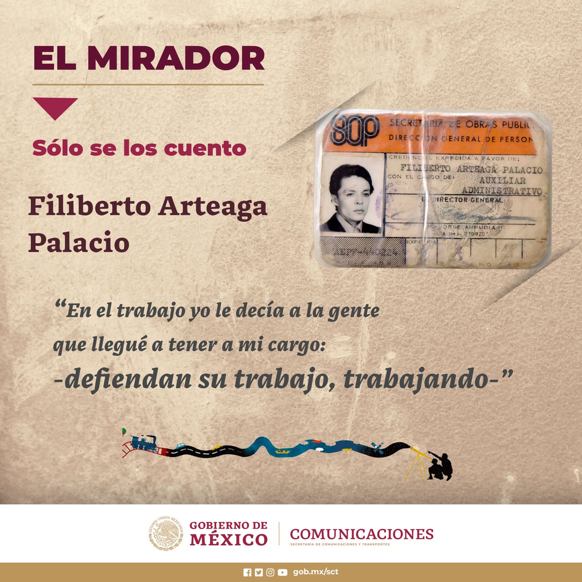 Hoy, #DíaDelTrabajo te invitamos a conocer la historia de Filiberto Arteaga Palacio, quien lleva más de 50 años laborando en #SCT.