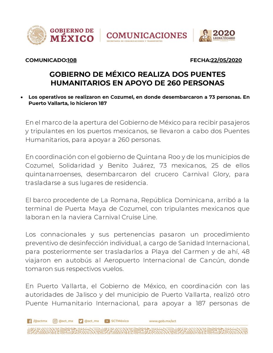 @GobiernoMX realiza dos puentes humanitarios en apoyo de 260 personas.