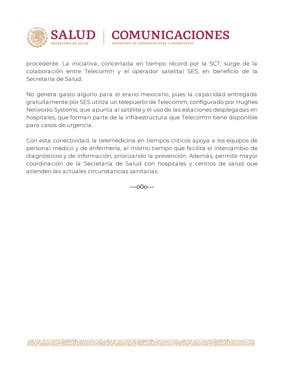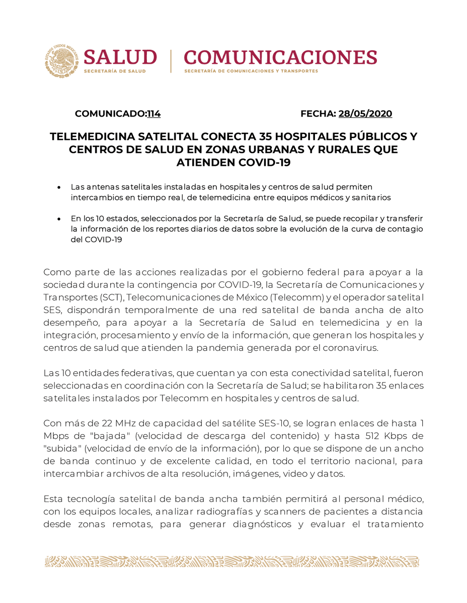 📌 #ComunicadoConjunto Telemedicina satelital conecta 35 hospitales públicos y centros de salud en zonas urbanas y rurales que atienden COVID-19. ➡️ https://bit.ly/2M5WaEb pic.twitter.com/bZmQpHdtKk