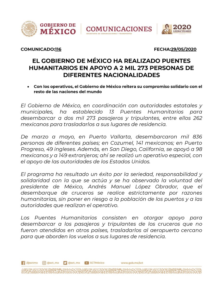 El @GobiernoMX ha realizado #PuentesHumanitarios en apoyo a 2 mil 273 personas de diferentes nacionalidades.